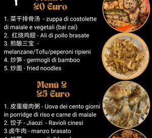 Nell'immagine a fianco un esempio di menù. Il Menù è variabile in accordo con i prodotti che si riescono a reperire a seconda della stagione e può essere concordato in modo da decidere la spesa. Massimo 12 persone. Preparazione delle pietanze direttamente a casa del cliente. Contatta la tua cuoca cinese Zeng Liping qui